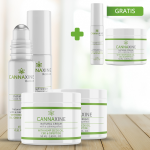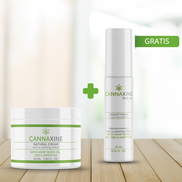 1x Cannaxine crema 50 ml e 1x Cannaxine Roll-on 15 ml.