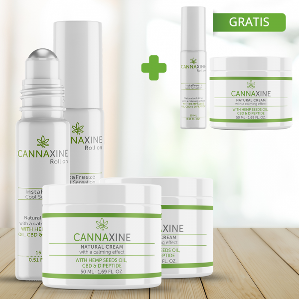 2+1 CANNAXINE GRATIS significa 2 creme e 2 roll-on + 1 crema e 1 roll-on gratis